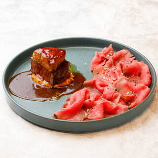 月替わりのメニューは、ワインとそれに合うお料理が書いてあるので、迷う事なし。 いいですね。お料理は、少なめなので、いろいろ試せるのも...