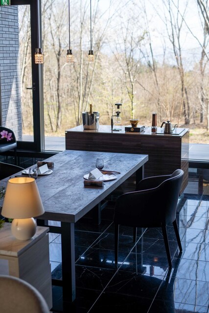 ガラス張りの窓から眺望を楽しめるダイニングテーブル1卓のみのプライベート空間。