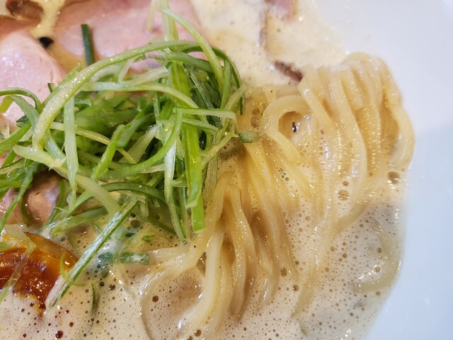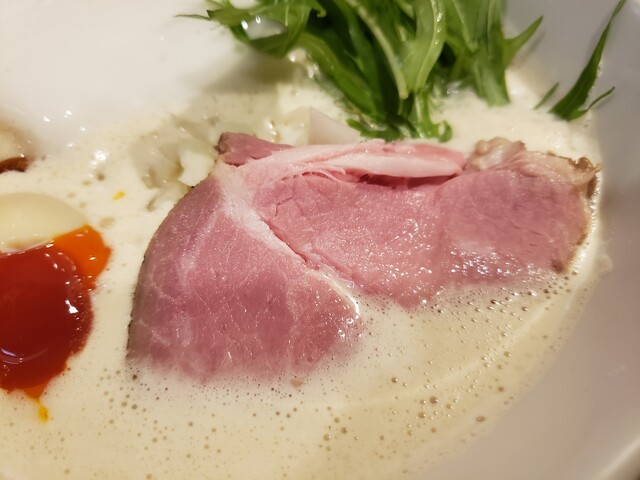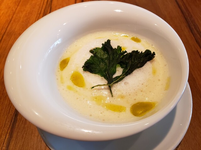 クリーミーでコクのある真っ白なスープに柚子のエスプーマ♪