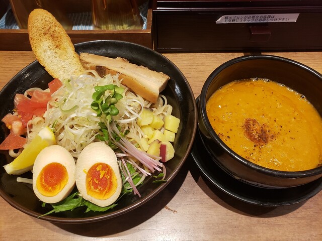 力強い海老の風味がスゴイ!!彩りも鮮やかな“海老つけ麺”です♪
