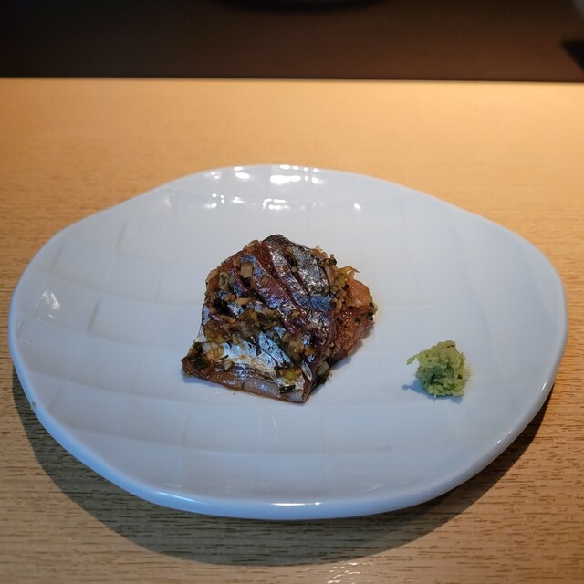 寒鰆の昆布〆は皮目を炙って香ばしく、レア感とともに楽しませていただきました<゜)))彡