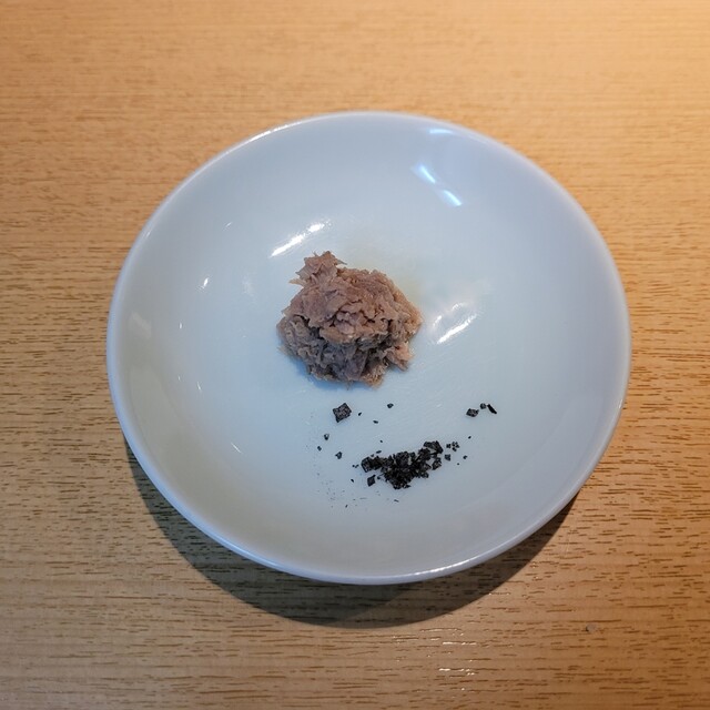鮪の尻尾を低温調理でコンビーフ状に、黒い塩をアクセントに日本酒がススミました(#^.^#)