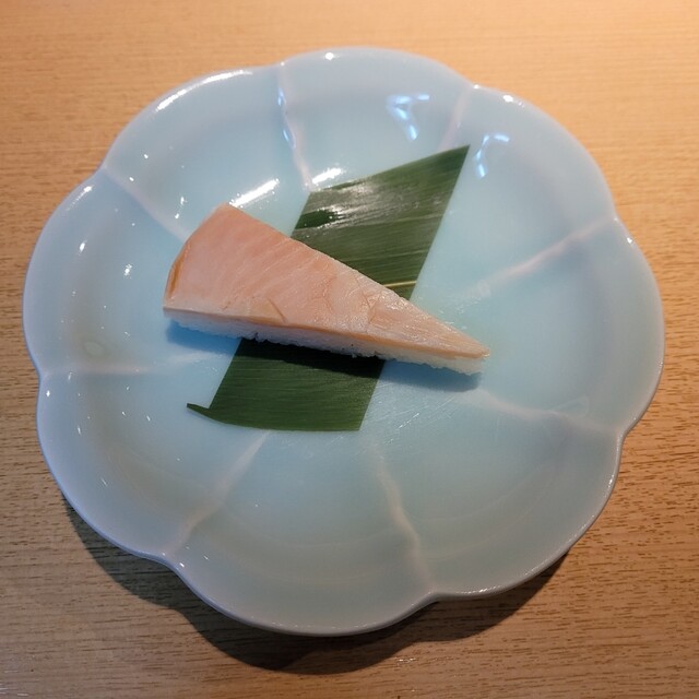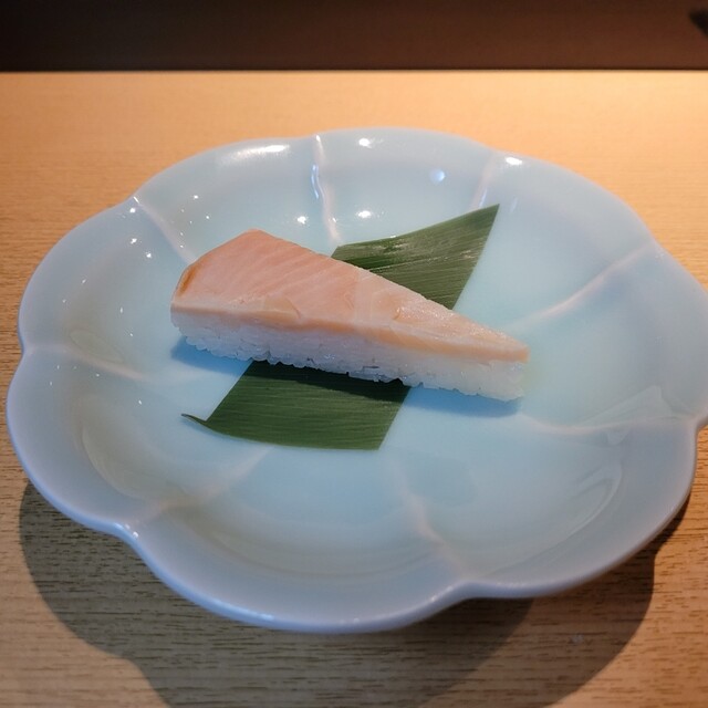 海で鰯を食べていた4kgクラスの桜鱒を鱒寿し、酢からこだわり1年以上かけて完成させたとのこと。