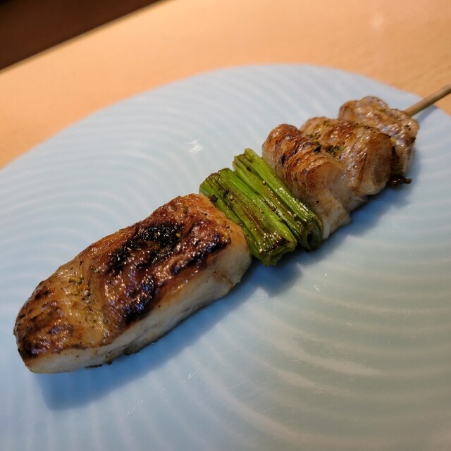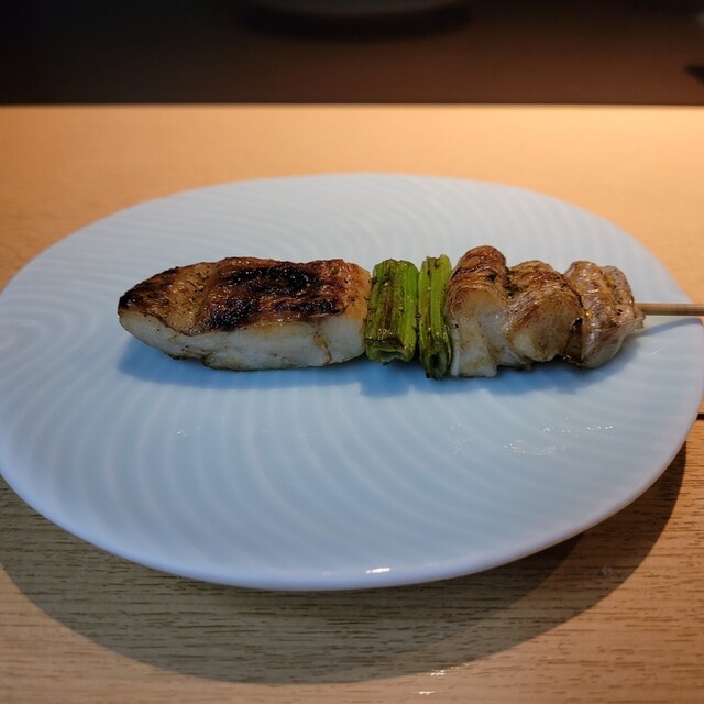 高級魚ノドグロはまたまた意表を突かれた、葱とあわせて串焼きで。