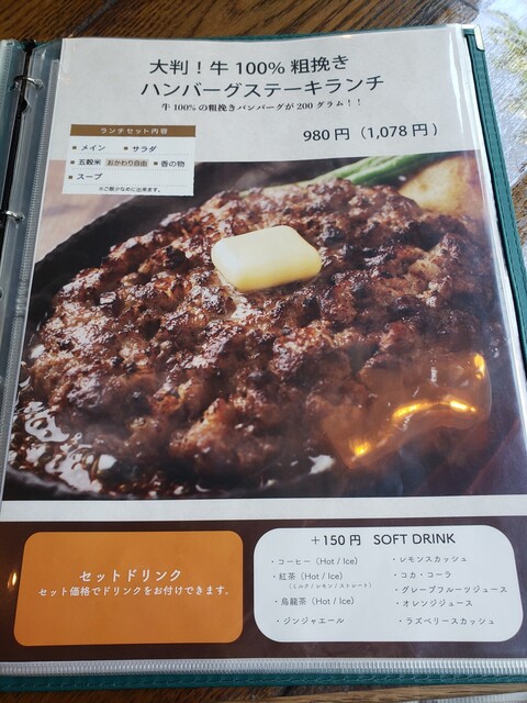 大判!牛100%粗挽き ハンバーグステーキランチ
