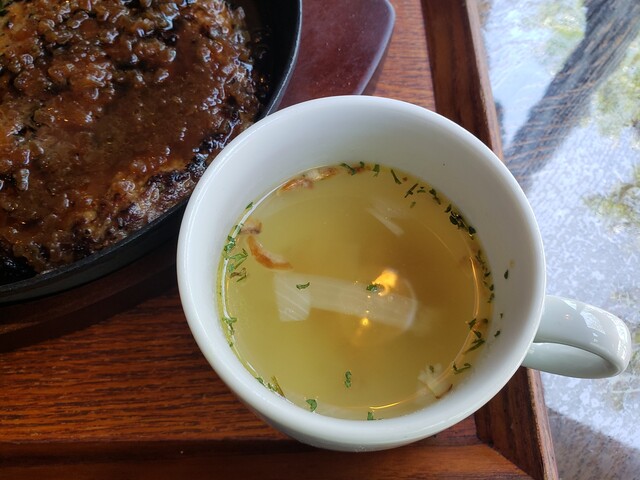 スープは、コンソメ仕立て。ベーコンと玉葱