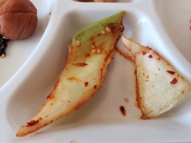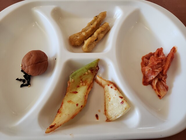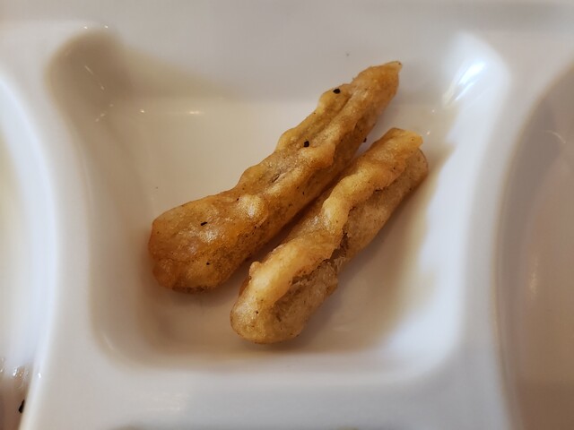 白菜キムチ、牛蒡の天ぷら、セロリのキムチ