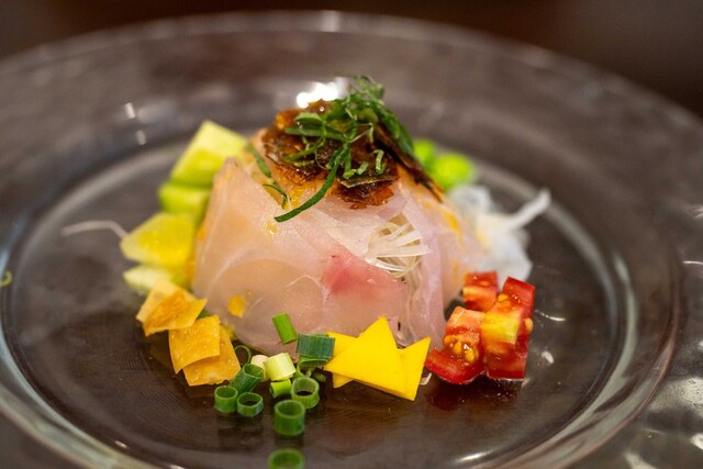 神経〆ブダイとナギナタコウジュのサラダ仕立て
