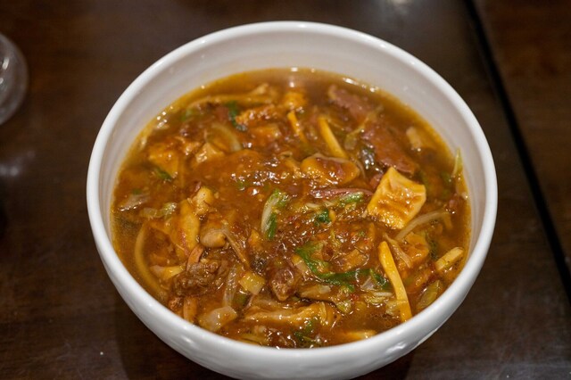 餡掛けならではトロミの付いたスープに辛味も効いており美味しい。