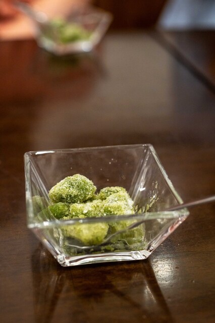 わさびシャーベットといったイメージの、辛味と苦味で尖りまくりの挑戦的スイーツ。