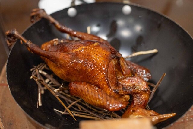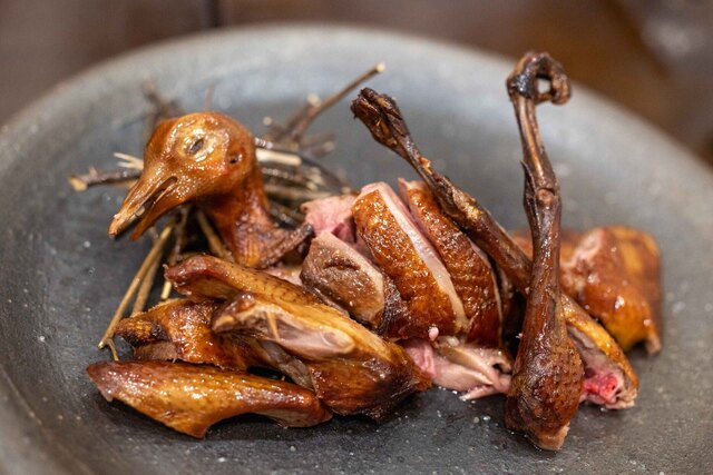 使っている鳩はチャイナ産ですがソミュール(燻製液)にも燻製チップにもクロモジを使用。