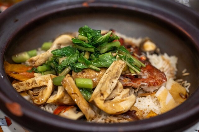 土鍋ご飯(アカハタ頭、アシタバ、真竹、トコブシ、アイタケ、ジャスミンライス)
