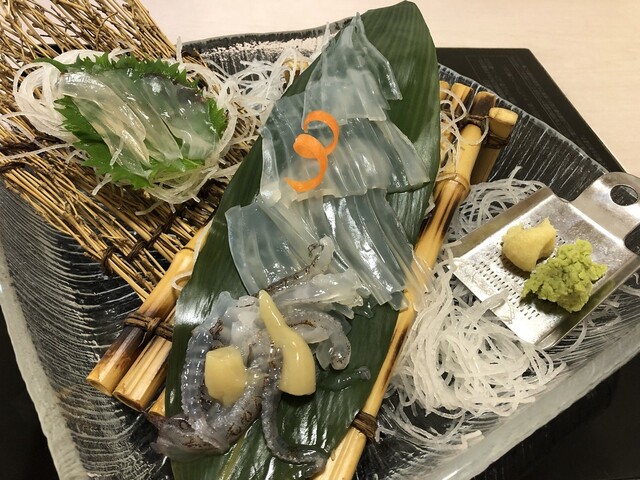 活イカ刺し、平目昆布締め、ぶりかまの塩焼き、味噌焼きおにぎり 再訪