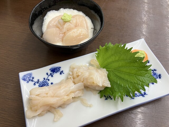 ほたての塩辛、ひも刺、山かけ、貝焼きみそ、にしん切込み 再訪