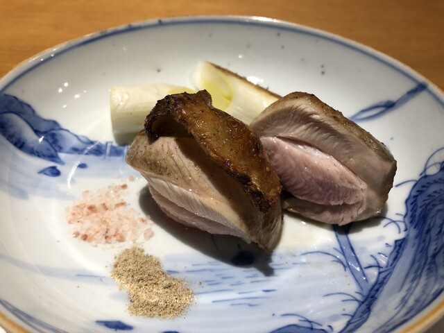フォアグラのポワレ、スープ2種<ホワイトアスパラ/新玉葱>、ニベのポワレ、エゾ鹿のロースト 再訪
